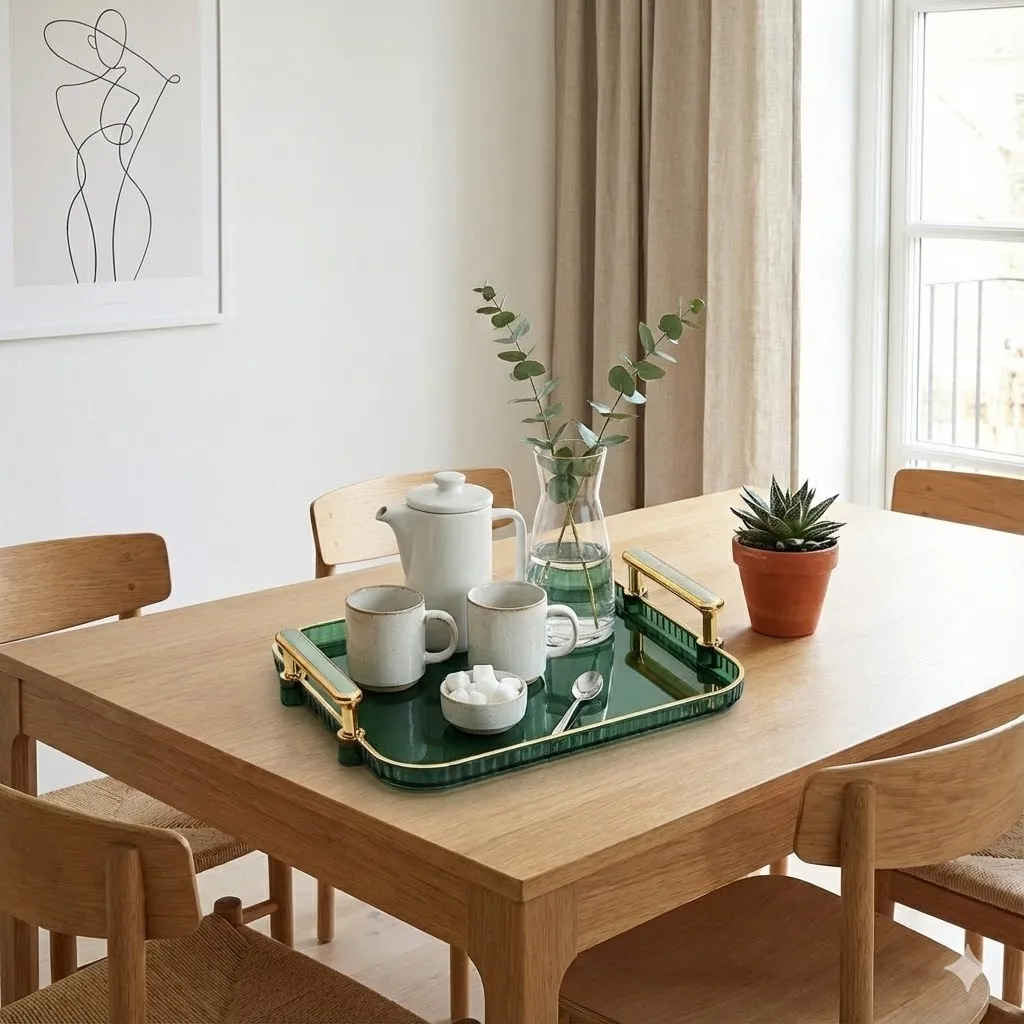 Su diseño práctico te permite tener a mano todo lo que necesitás —desde velas, perfumes o joyas hasta pequeños objetos decorativos— y su acabado con toques dorados aporta elegancia y estilo a cualquier ambiente. Ideal también para crear composiciones fotográficas o contenido para redes sociales.