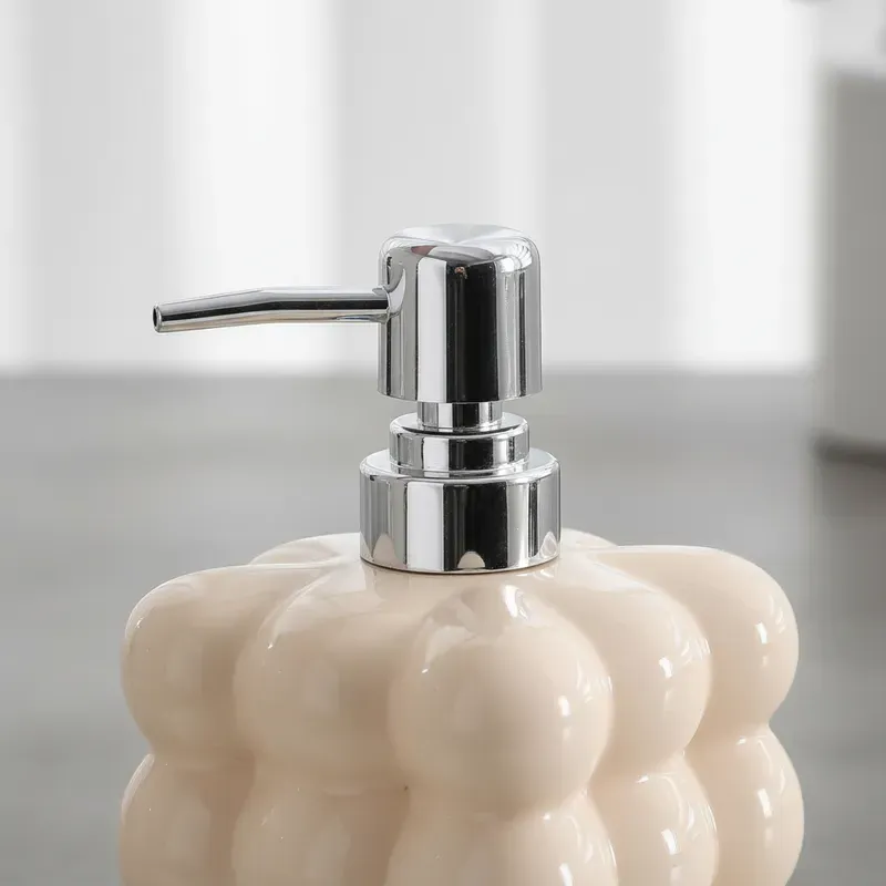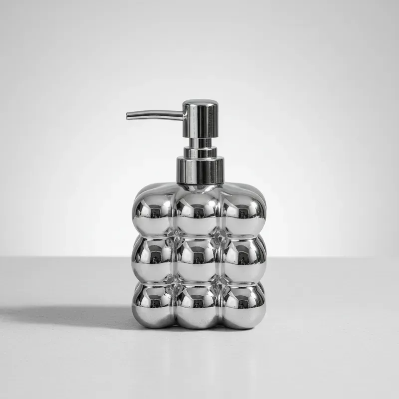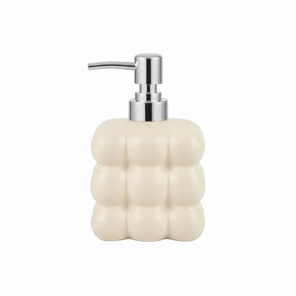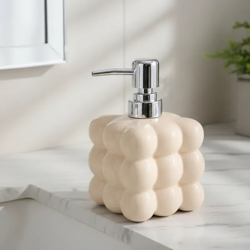 El Dispenser de Jabón Líquido Bubble Cube combina estética moderna y funcionalidad cotidiana. Su estructura cerámica de burbujas es un guiño al diseño escandinavo, aportando textura, luminosidad y un toque artístico a tus espacios. Con bomba metálica cromada, ofrece una dosificación suave y precisa para jabón líquido o detergente.