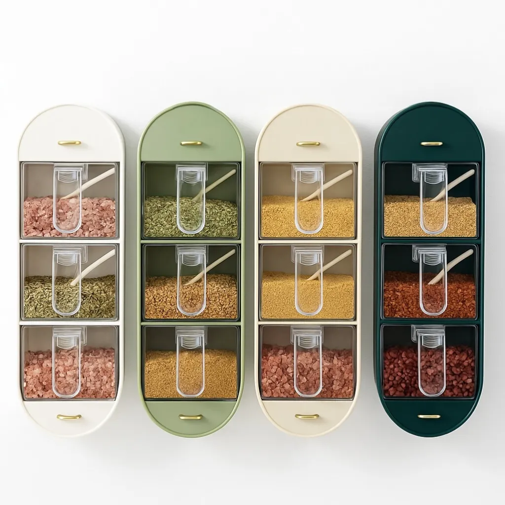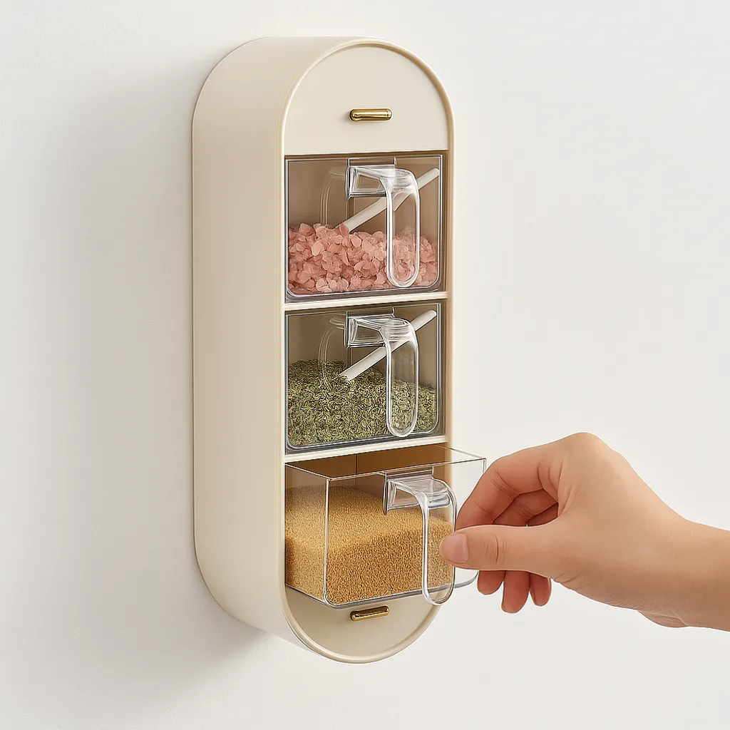 El Especiero Colgante es un organizador de especias vertical que libera la mesada y mantiene tus condimentos visibles y a mano. Su diseño armónico aporta orden y estética a cocinas modernas y compactas, optimizando el espacio con una solución práctica y elegante.