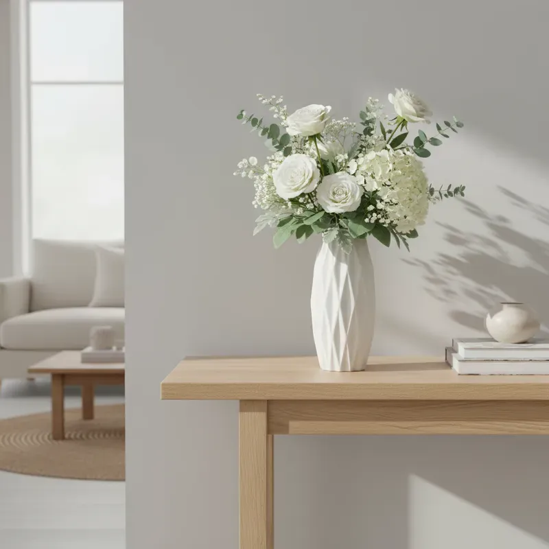 Su textura delicada y estética minimalista lo convierten en un acento decorativo que resalta tanto con flores como solo.