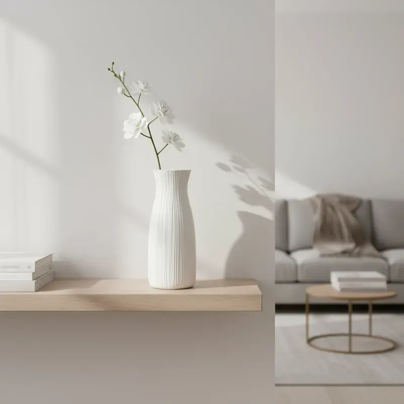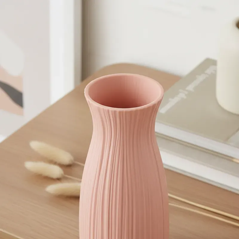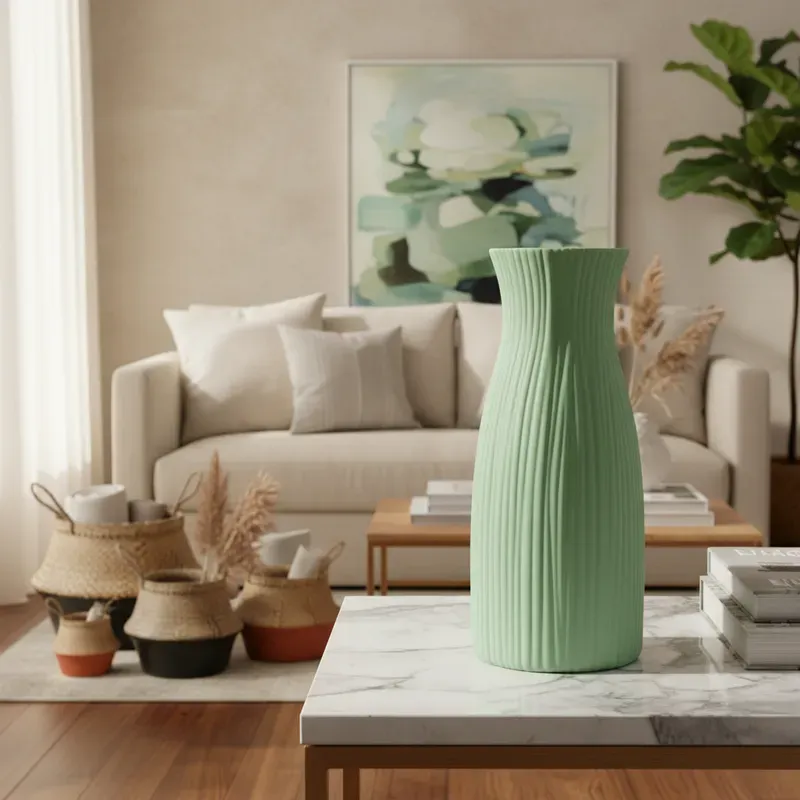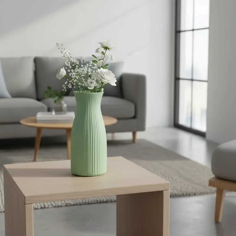 El Florero Prisma combina curvas suaves y textura acanalada para sumar elegancia sin recargar. Su estética nórdica y minimalista realza mesas de centro, estanterías y recibidores, con o sin flores.