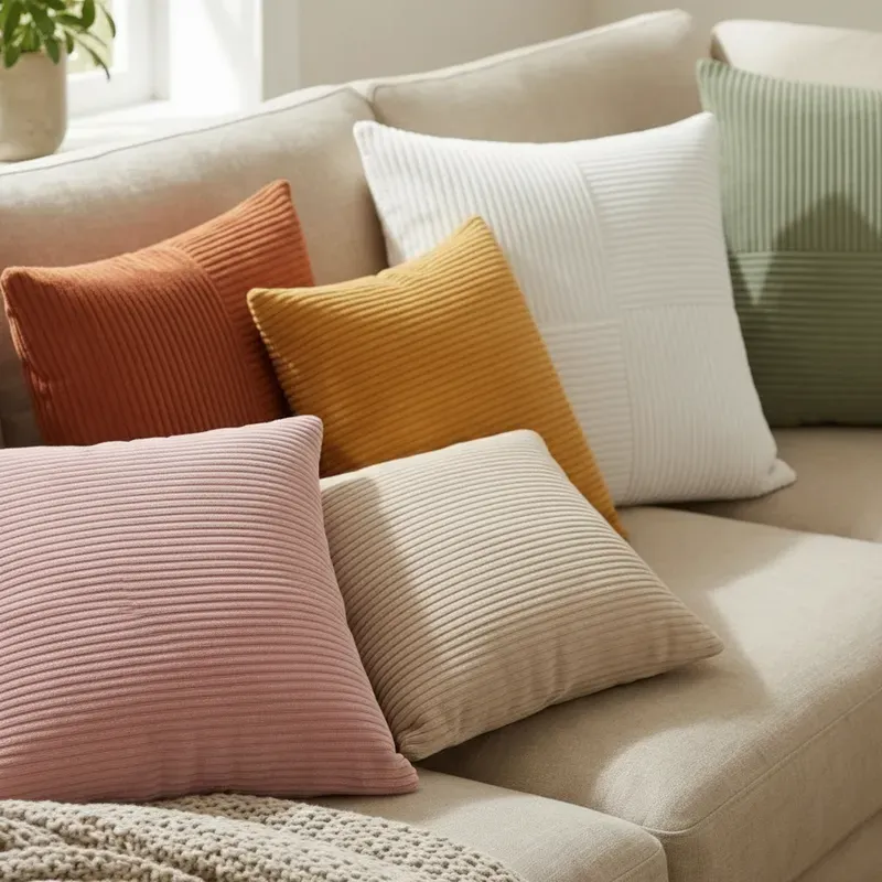 La Funda Almohadón Geométrica aporta textura y calidez con un diseño en acabado suave que eleva instantáneamente sofás, camas y rincones de lectura. Un detalle simple que transforma tu ambiente en un espacio más armónico, moderno y acogedor.
