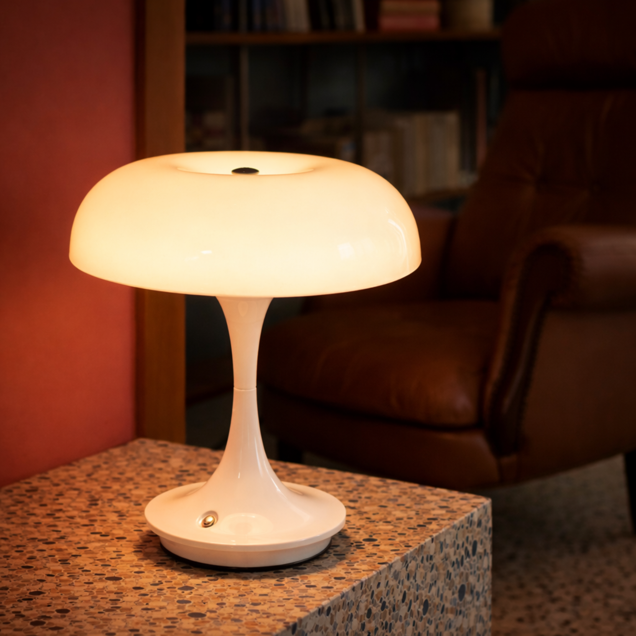 - Combiná la Lámpara Hongo Lumen con mesas de luz o mesas auxiliares para lograr un espacio armónico y funcional