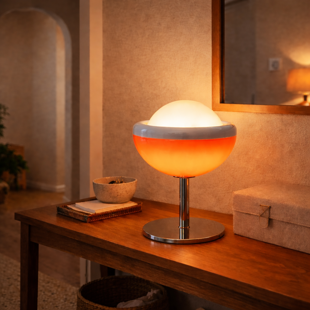 La Lámpara Solara combina diseño nórdico moderno con una fuerte impronta retro Space Age y Mid Century tardío para crear una iluminación suave que acompaña tus momentos de descanso. Su forma orgánica tipo tulipán, muy asociada al diseño italiano de los años 60–70, y su luz difusa generan una atmósfera acogedora, ideal para transformar cualquier ambiente en un espacio más cálido y personal.