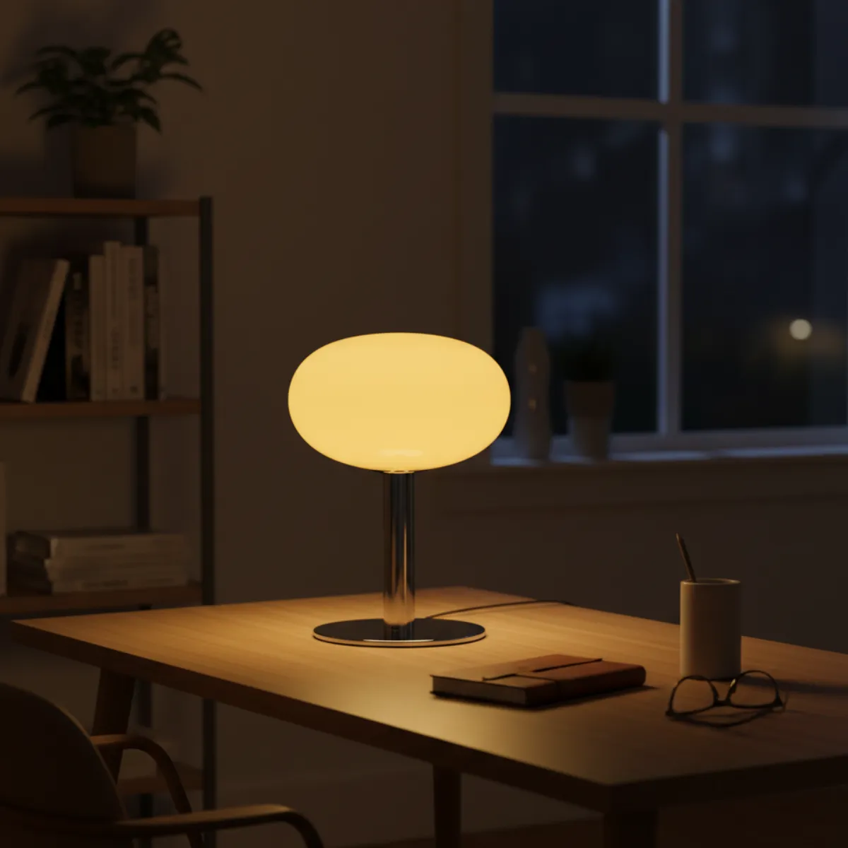 - Ubicala sobre mesas de luz, escritorios o estanterías para destacar su efecto lumínico.