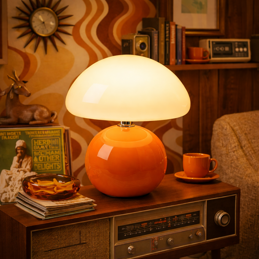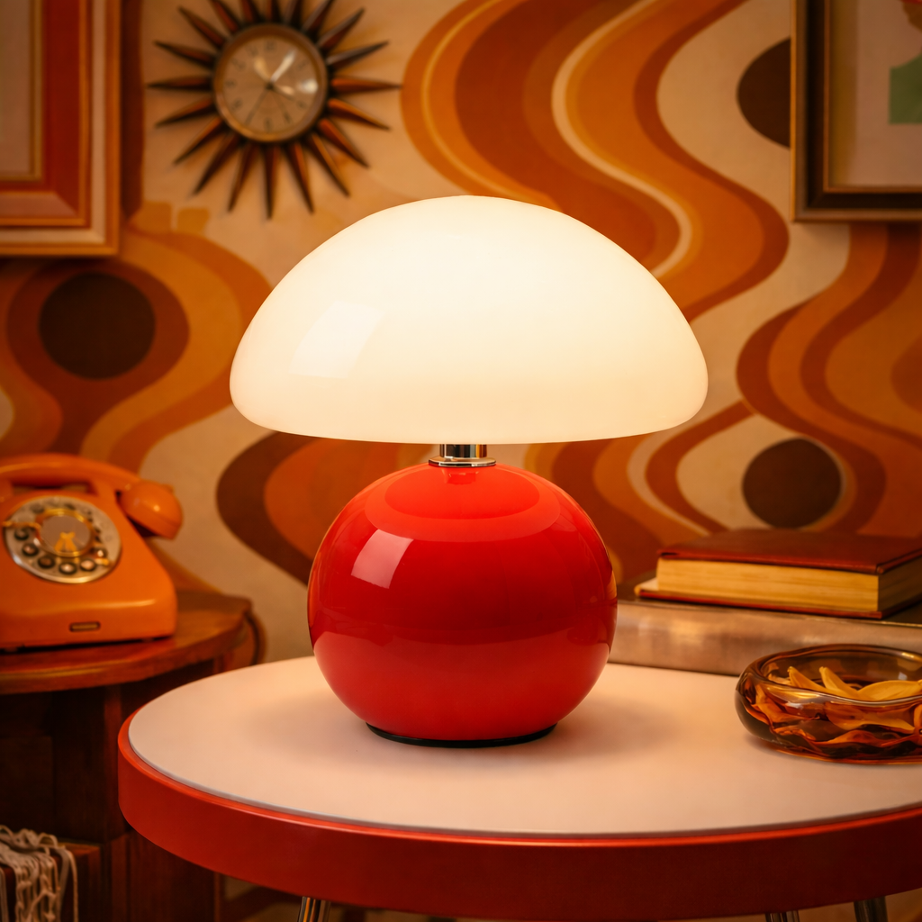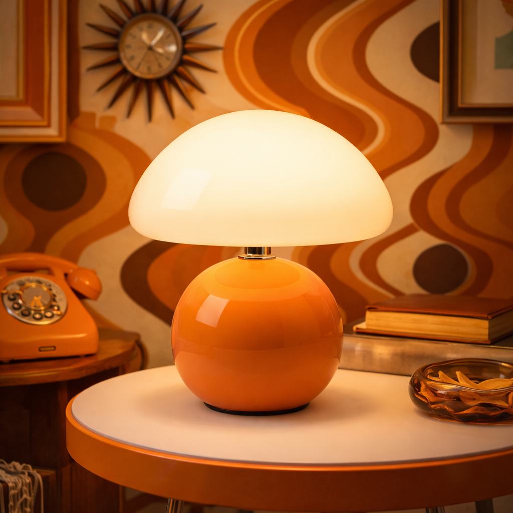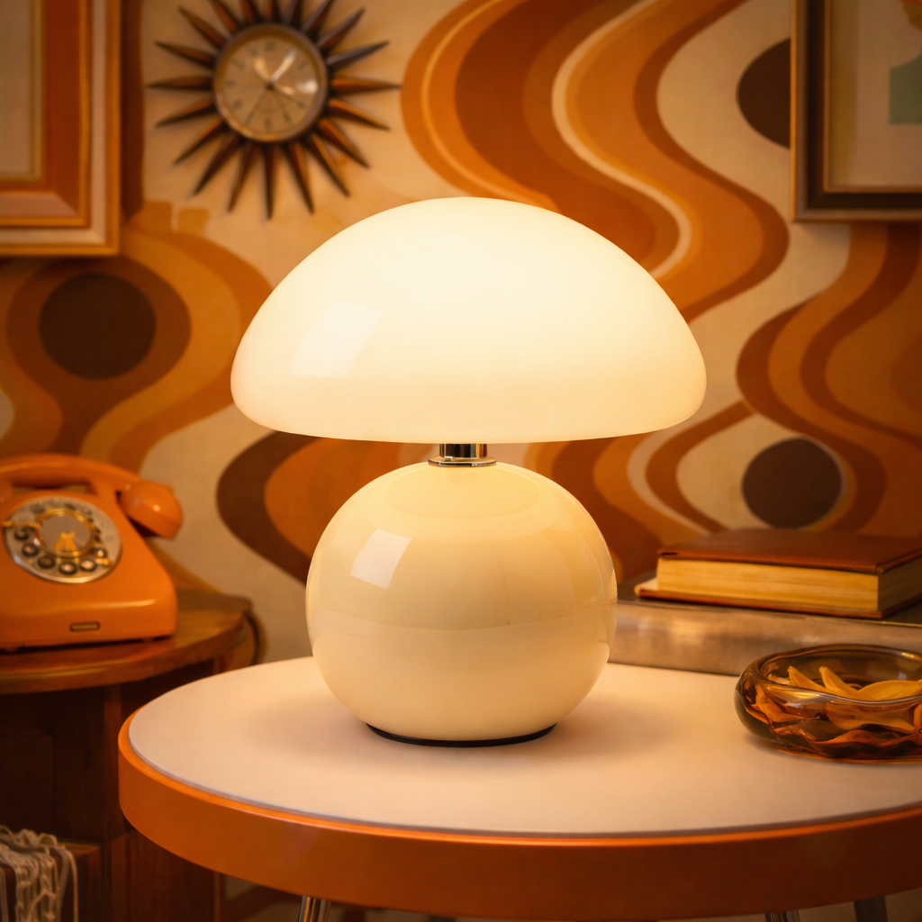 - Diseño tipo seta con silueta suave y equilibrada
