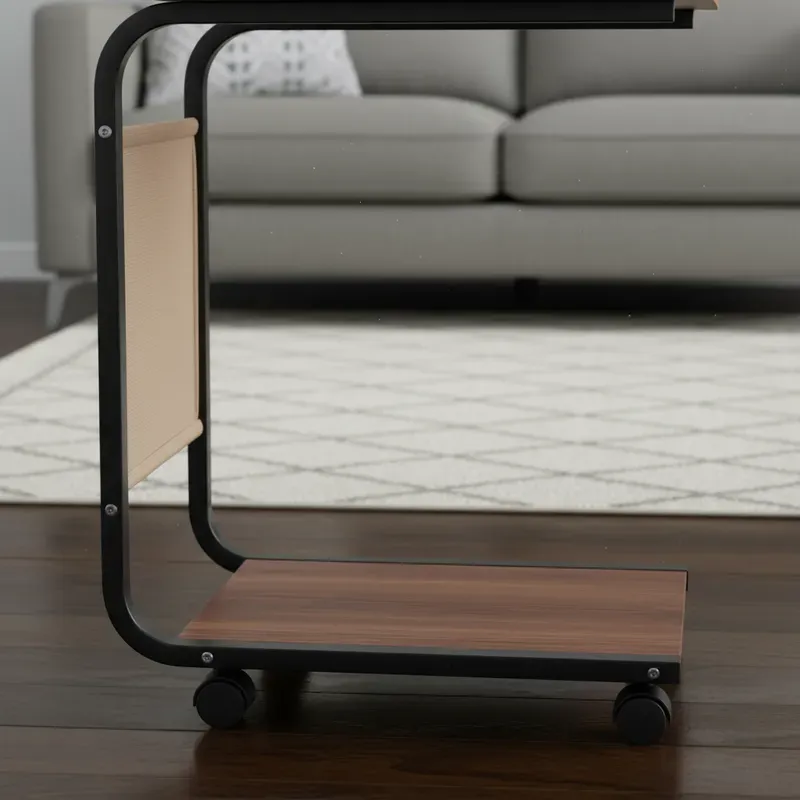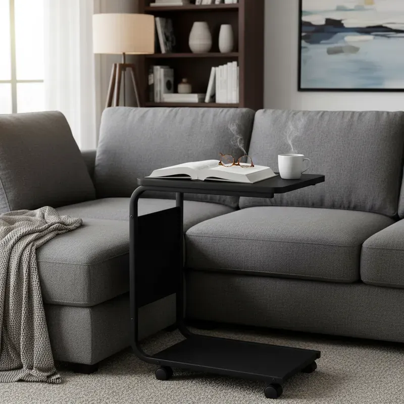 La Mesa Auxiliar Multifuncional es la aliada perfecta para un hogar dinámico y organizado. Su diseño en forma tipo C permite acercarla fácilmente al sofá, la cama o el escritorio sin ocupar espacio de más. Gracias a sus ruedas podés moverla con total comodidad entre ambientes, además, su bolsillo lateral mantiene a mano libros, controles y dispositivos, sumando orden con estilo contemporáneo.