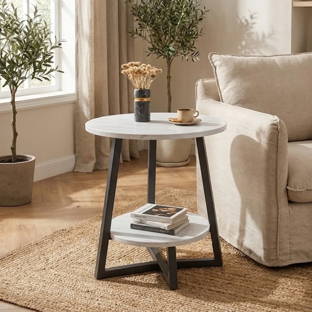 Gracias a su doble nivel, permite organizar libros, objetos decorativos o dispositivos electrónicos, optimizando el espacio sin perder estilo. Su formato compacto la convierte en la opción ideal para departamentos, livings modernos o dormitorios donde el diseño funcional marca la diferencia.