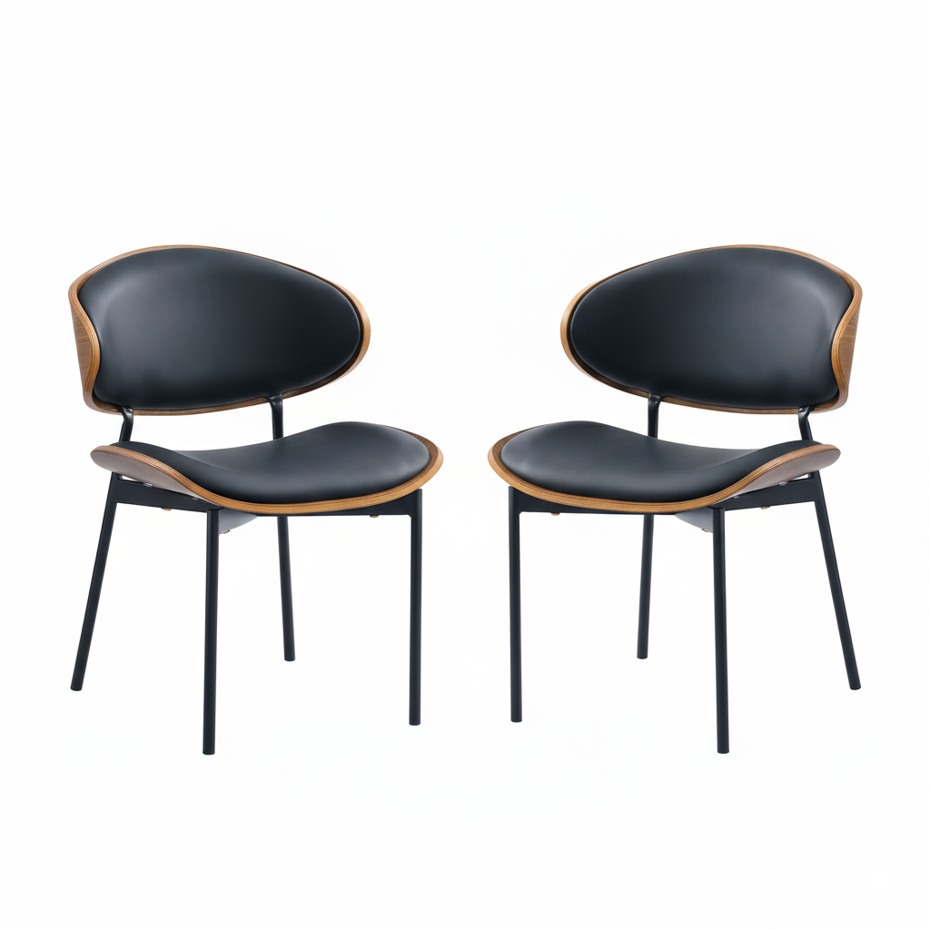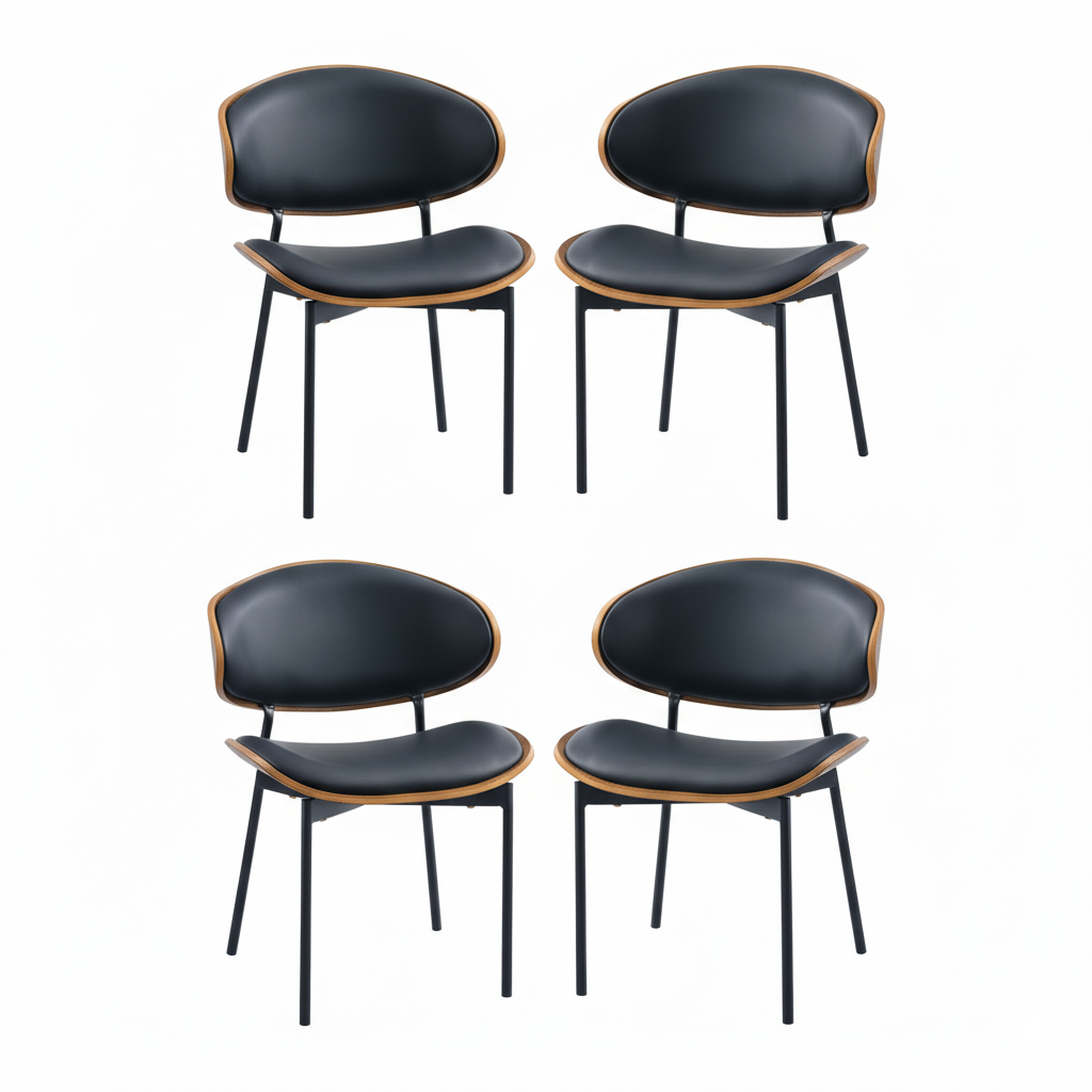 La Silla Nórdica Loft es el equilibrio perfecto entre diseño escandinavo y estilo urbano. Su estructura metálica negra, respaldo en madera curvada y tapizado en cuero sintético crean una pieza moderna, elegante y atemporal.